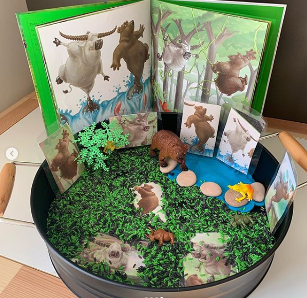 Colored Rice is our go to starter for any sensory bin theme. It could be the sand in a beach tray, grass on a farm, black for space or just a good old rainbow mix.